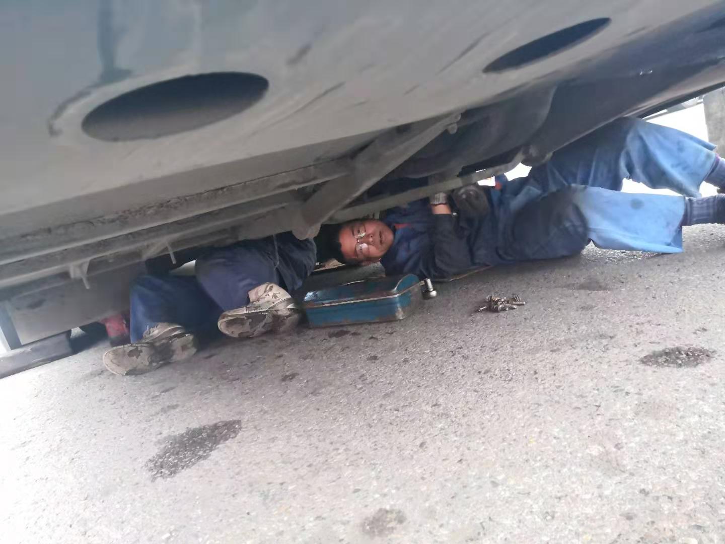 11月21日上午客服總調(diào)親自帶隊(duì),修理廠派出維修精英4人,于11:30抵達(dá)。此時(shí)天空不作美,寒風(fēng)刺骨摻和冰冷雨水,搶修環(huán)境更為惡劣,為盡快恢復(fù)班次,師傅們顧不上吃飯,便開始搶修工作,從變速箱附件拆卸、安裝,變速箱落地、吊裝,分離軸承更換、潤滑,每個(gè)步驟環(huán)節(jié)都井然有序,連續(xù)作業(yè)3小時(shí)后,于下午14:30搶修成功。此時(shí),師傅們才放心的吃了飯,穿著濕透的工作服返回?fù)P州。他們?cè)谄椒驳墓ぷ鲘徫簧,用辛勤的汗水,展現(xiàn)了揚(yáng)汽人默默奉獻(xiàn)的精神。