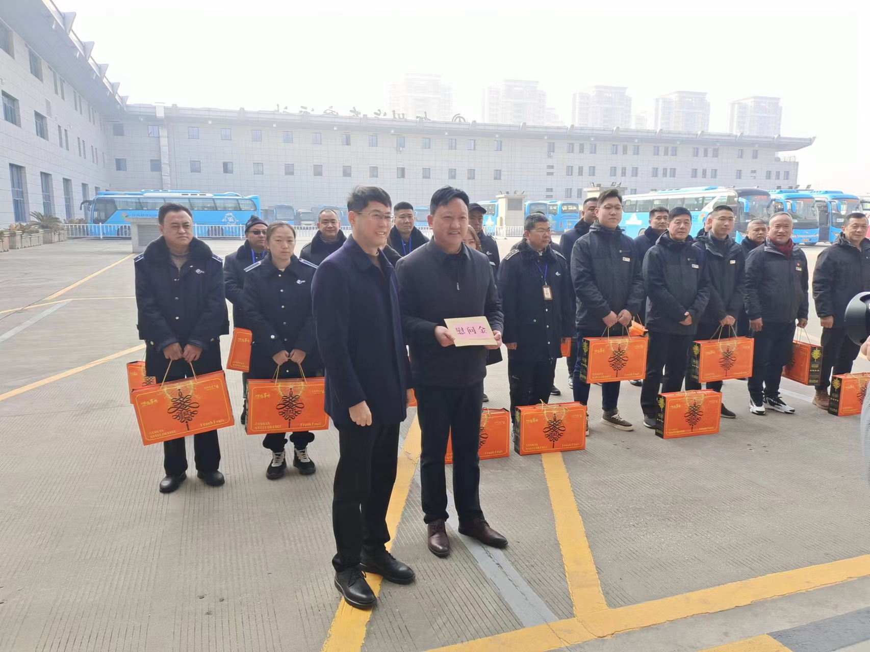 2月9日除夕,在萬(wàn)家團(tuán)聚、喜迎新春之時(shí),市交通產(chǎn)業(yè)集團(tuán)黨委書(shū)記、董事長(zhǎng)方璇智帶隊(duì)來(lái)到揚(yáng)汽集團(tuán)生產(chǎn)一線,慰問(wèn)堅(jiān)守崗位的干部職工,為他們送去慰問(wèn)品和祝福,對(duì)他們?cè)谛麓杭压?jié)期間堅(jiān)守工作崗位,付出辛勤勞動(dòng)表示衷心感謝,并向他們致以新年問(wèn)候。